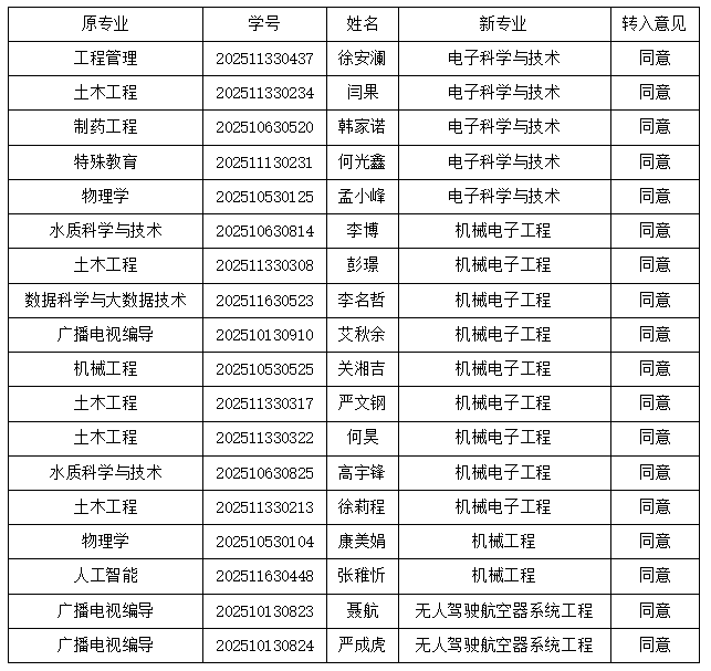 根据公司转专业小组及2026年第6次党政联席会会议讨论决定,符合转入条件有徐安澜等18名同学。具体情况如下表,公示期为3月18日-3月20日,共三天。公示期如有异议,请实名向教学科研办反映,反映情况需实事求是、客观公正。