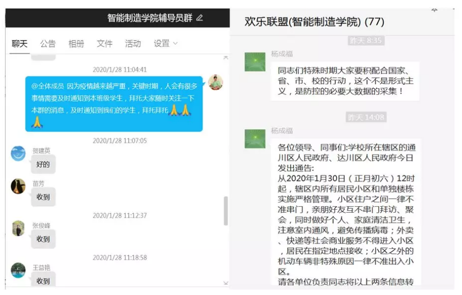 3.公司要严格落实公司的相关文件和要求,有关负责人全天在家值班,随时把控全院师生情况,针对公司和政府提出的疫情要求进行安排部署落实相关工作。
